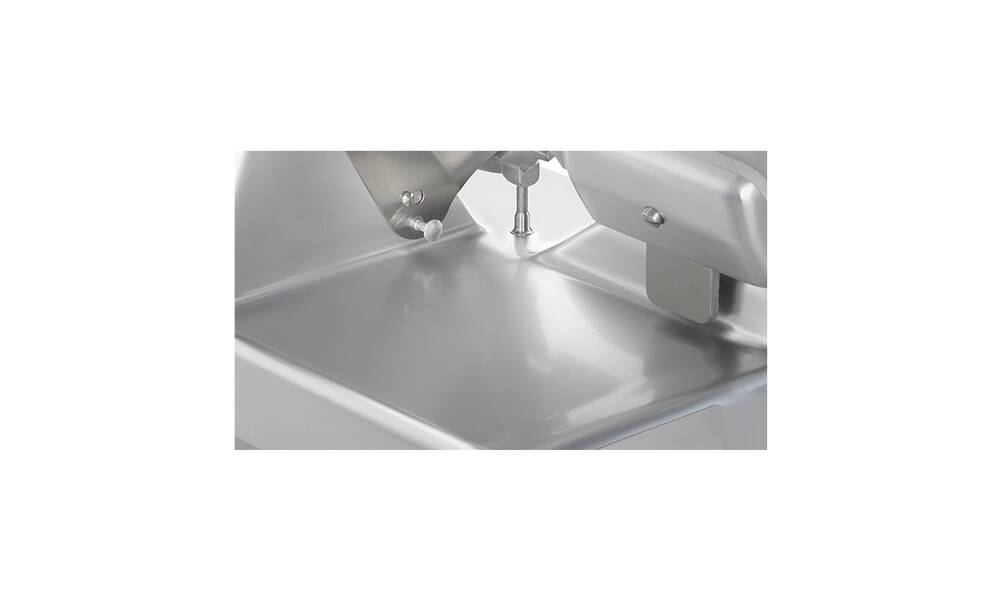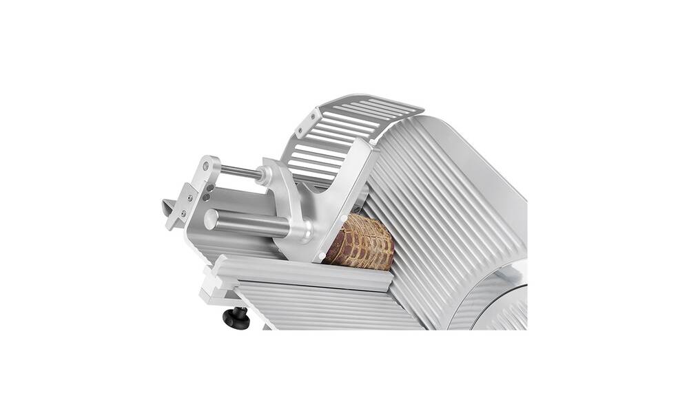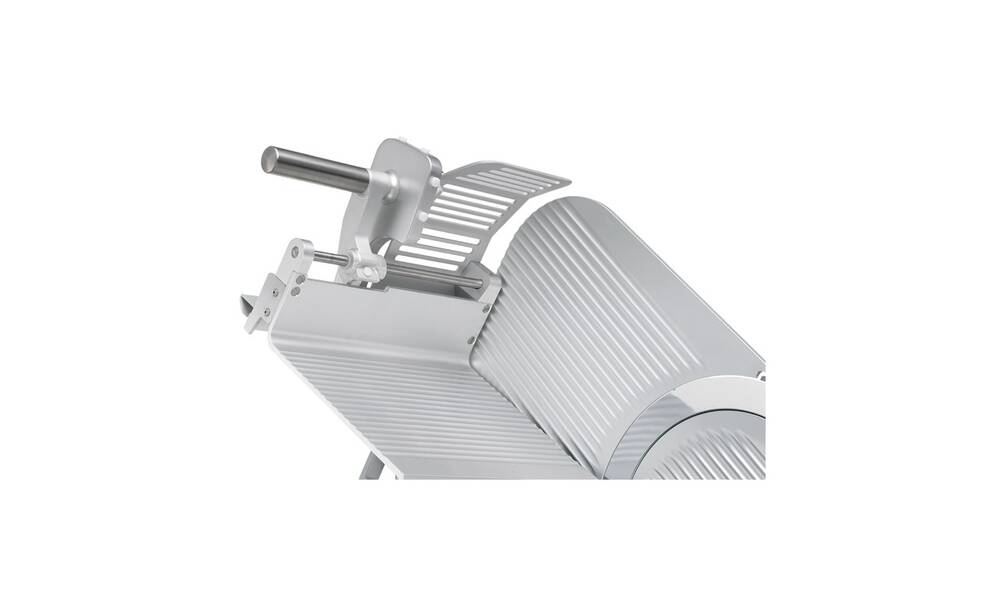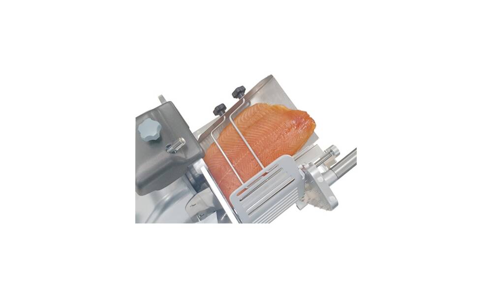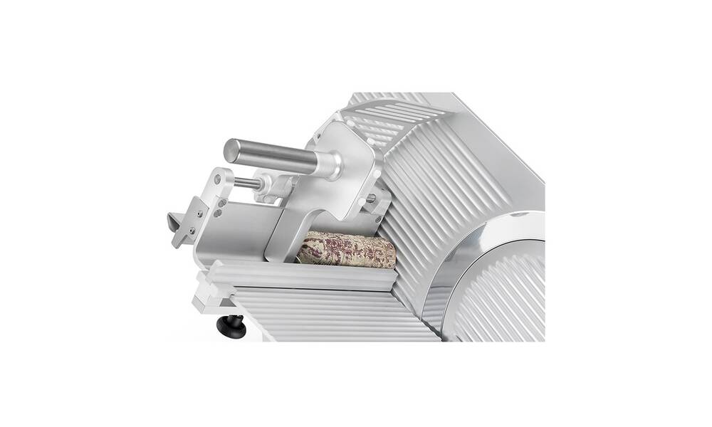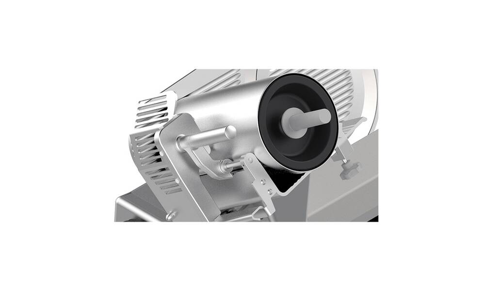 Nářezový stroj PALLADIO AUTOMEC 350 FROZEN s nerezovým nožem o průměru 350 mm s uložením posuvného stolu našikmo, od itaslkého výrobce SIRMAN.